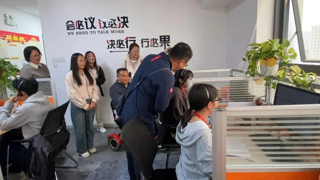 李冠宏副校长、经济信息系主任王小川及相关教师一同看望了在企业的实习学生。调研中,老师们就学生的实习内容、实习的适应情况、工作压力等进行了询问和关怀。并与残疾学生代表开展了座谈会。