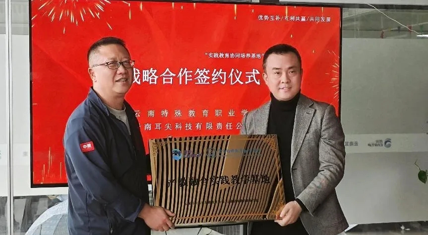 5月26日,云南特殊教育职业学院数字经济学院与云南耳尖科技有限责任公司举行产学研战略合作签约暨授牌仪式。云南特殊教育职业学院数字经济学院院长王小川、宣传统战部部长张培新、耳尖科技总经理黄浩原、学院网络舆情监测专业教师及耳尖科技相关部门负责人,共同见证双方建立战略合作关系签约时刻。