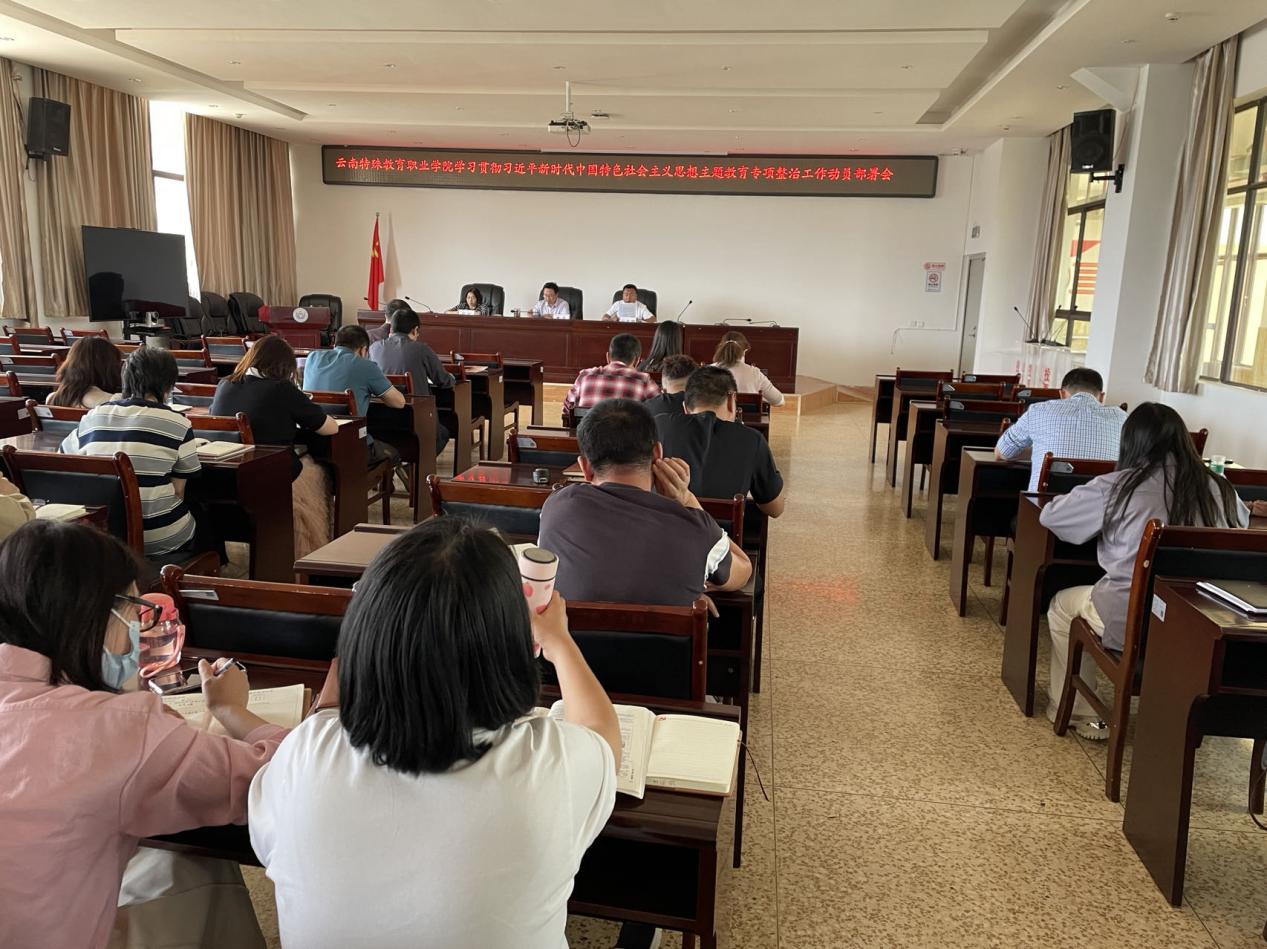 2023年6月16日下午,云南特殊教育职业学院召开学习贯彻习近平新时代中国特色社会主义思想主题教育专项整治工作动员部署会。党委副书记、院长董亮作动员讲话,党委副书记石安银主持。