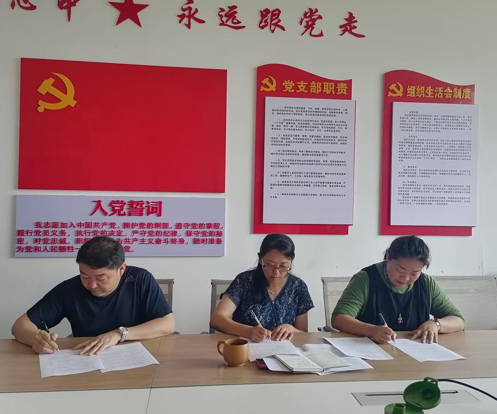 图为招生工作领导小组与工作人员签订廉洁承诺书