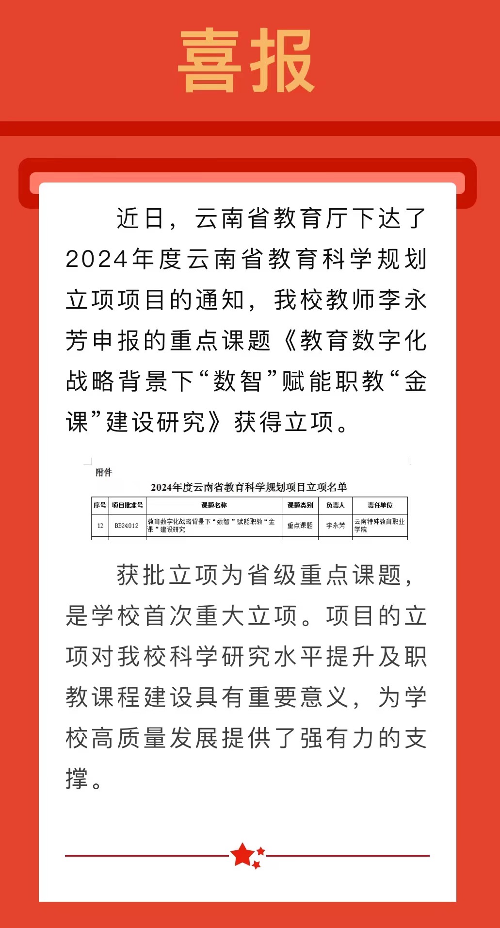 上一篇: 喜讯!我校2个课题获2025年度云南省教育科学规划课题立项