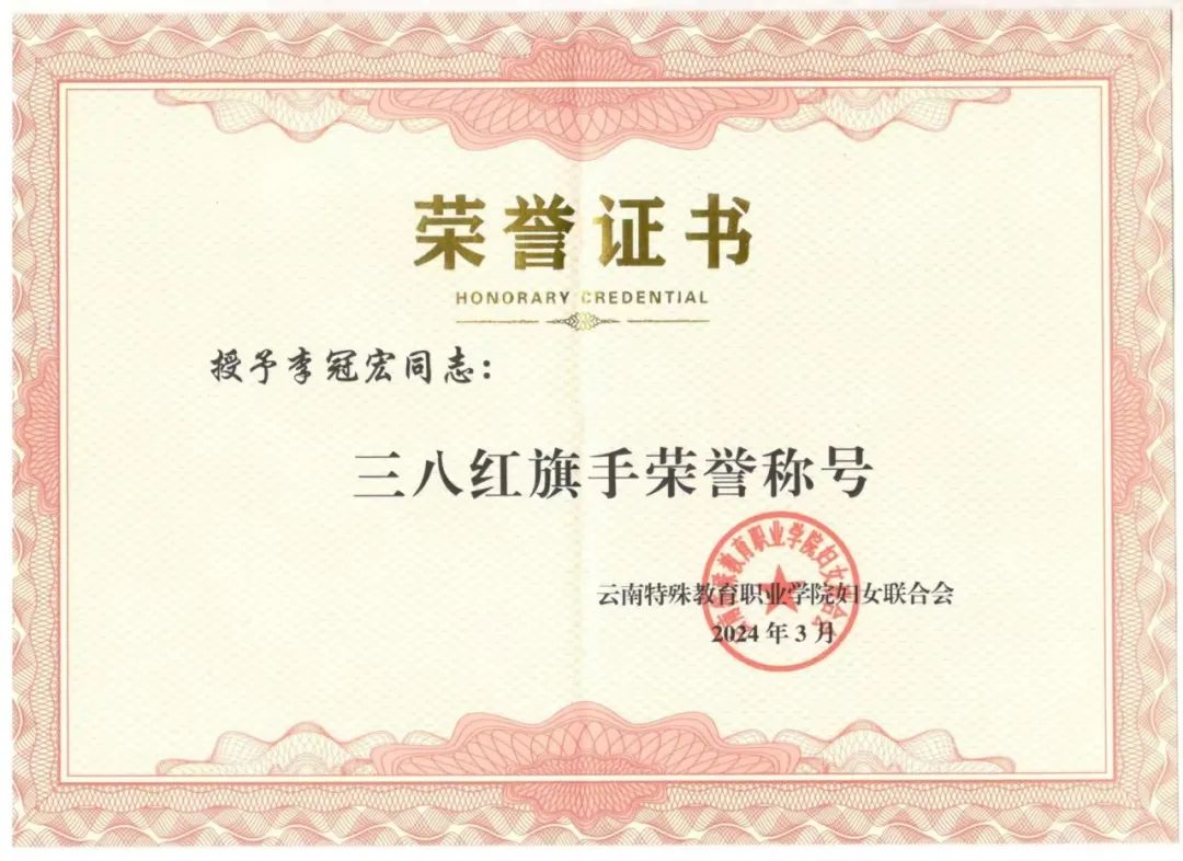 以上努力和付出得到了师生和学校的认可,2024年评为校“三八红旗手”。