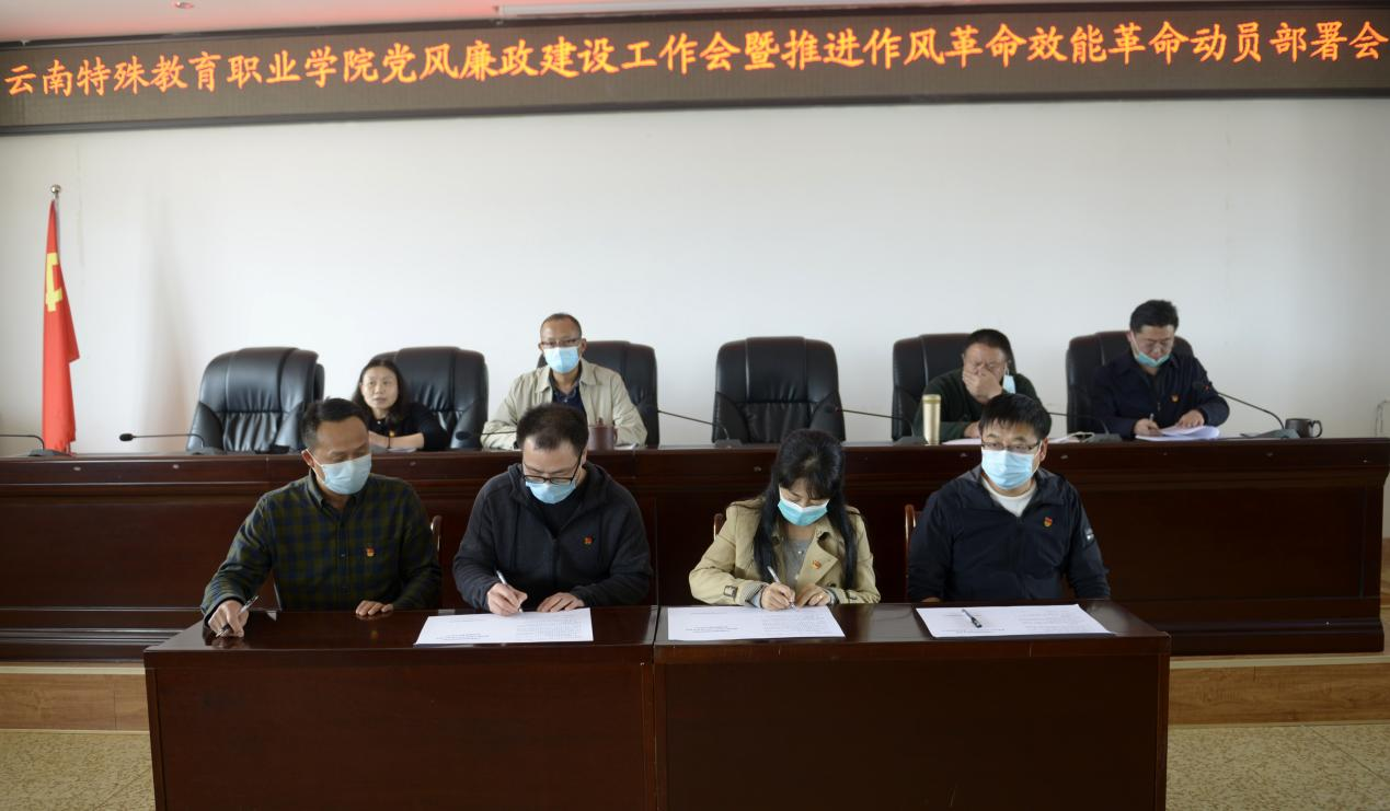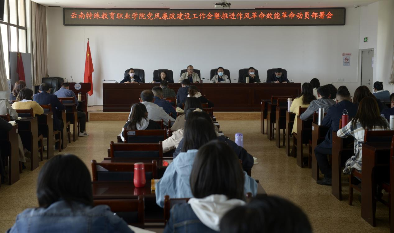 2022年3月23日,云南特殊教育职业学院党风廉政建设工作会暨推进作风革命效能革命动员部署会在学院大会议室召开。学院党委书记孙继先、纪委书记刘亚彬出席会议并讲话,学院党委副书记石红主持会议。学院全体党员及全体中层干部参加了本次会议。