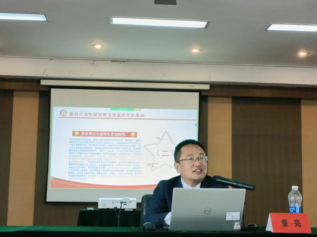 接着党委副书记、院长董亮结合自身学科背景和工作经历以“特教学院显特色 别样人生更精彩”为题为学生讲授了开学第一课。董亮以《无问西东》中的电影片段,引出“所谓大学者,非谓有大楼之谓也,有大师之谓也”的话题,结合我校目前的发展前景,激励同学们在艰苦简陋的环境中,更能培养高贵的品格,同样能出人才。接着董亮从中国式现代化与特殊教育普惠发展,新时期特职院的新气象,奋进新时代的行动路线三个方面,结合我校的办学特色、育人理念,紧扣职业教育发展的时代脉搏,以我校办学以来取得的硕果以及我校各专业在社会发展大趋势中的美好前景为同学们擘画了学校未来发展的美好蓝图及自身专业发展的广阔前景,鼓励同学们抓住机遇,结合自身的专业特色,认真学习,积蓄力量。
