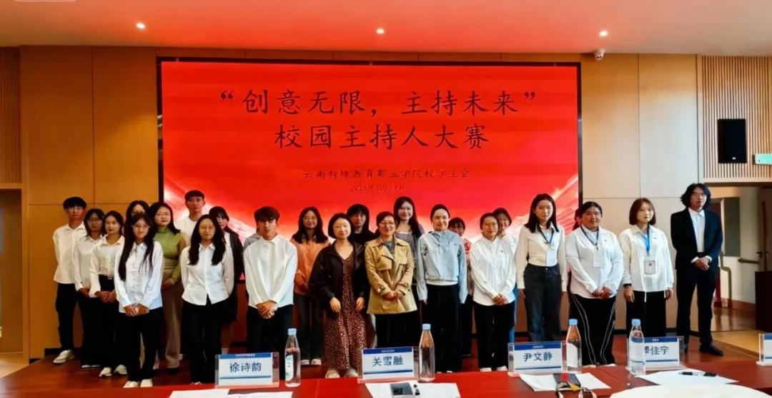 云南特殊教育职业学院“创意无限 主持未来”校园主持人大赛于2025年10月9日圆满落下帷幕。大赛自9月24日启动初赛,经多轮选拔,数名优秀选手脱颖而出,成功会师决赛。他们以语言为刃,以思维为火,为全场观众奉献了一场兼具文采与风采的视听盛宴。