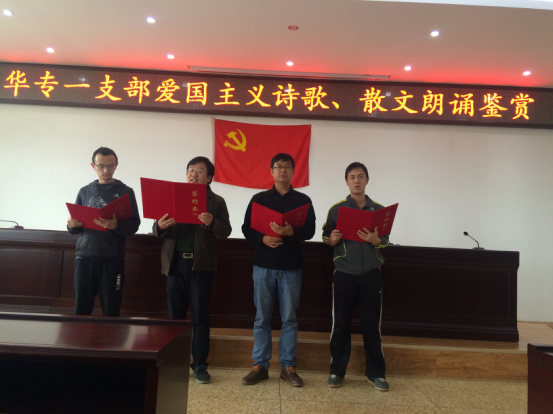 中共云南省华夏中专第一党支部爱国诗歌朗诵活动顺利举行为迎国庆、弘扬中国的传统诗歌文化,以诗歌赞美祖国壮美河山,继承发扬民族精神。值此祖国华诞,学校第一党支部组织全体党员及我校15、16级大专班同学于2016年10月17日下午在大会议室举行全体党员爱国诗歌朗诵活动。党员同志们积极响应,踊跃报名,共组成...