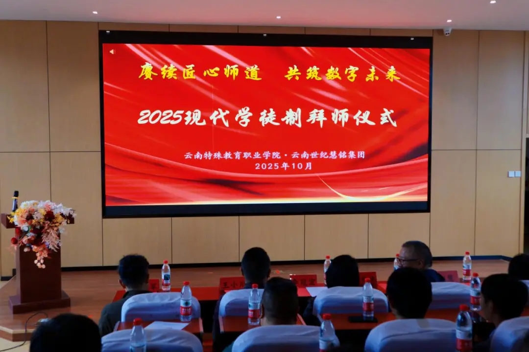 近日,云南特殊教育职业学院数字经济学院与世纪慧铭集团联合举办 2025 年现代学徒制拜师仪式。以师徒结对为媒,解锁数字人才培养新范式。