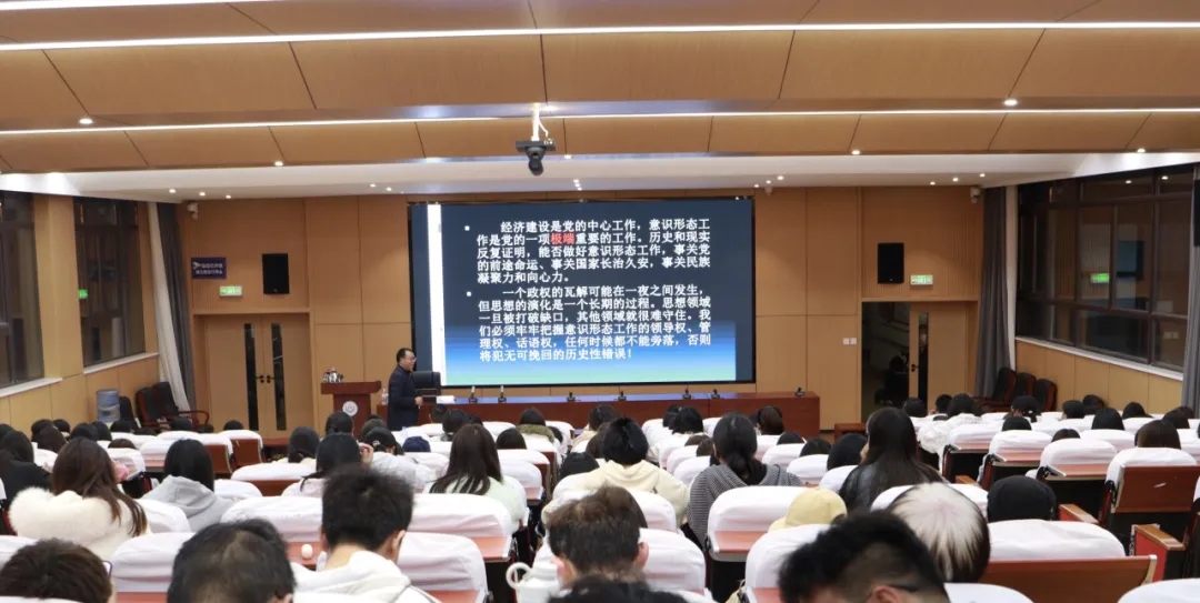 10月27日,诵弦文化讲坛(第十八期)在我校举行,春城晚报(开屏新闻)总编辑赵文宣以“当前意识形态斗争的基本态势”为题,为180多位师生作了形势政策报告。赵文宣分析了当前网上意识形态领域各种对立、交锋的表现形式,强调意识形态斗争看似无形,不见刀枪,但在一些重大突发事件、时间节点时不时冒出各种奇谈怪论...