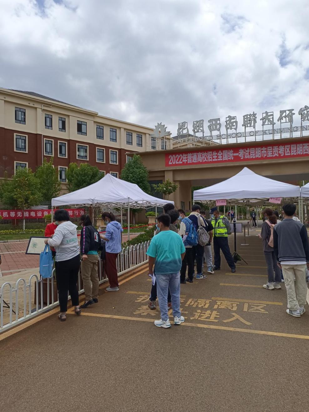 高考前夕,为了保证高考顺利进行,招生与对外发展处详细地制定了送考工作方案,以确保学生顺利进入考场。此次高考我院共有21名学生参加考试,考点集中在西南联大研究院附属学校。6月7日早上开考前,学院副院长李冠宏一行到考点为高考学生加油打气。高考期间,徐艳蓉、肖然负责所有考生的全面管理工作,组织考生以考场为单位考前、考后的往返集中,时时关注考生动态,对所有考生进行健康状况的监测,做好考生的思想工作,注重考生心理健康,督导考生按时学习、赴考、就餐、休息等,做好相关方面的沟通、协调并及时处理考试期间出现的突发事件,确保考生安全高考。