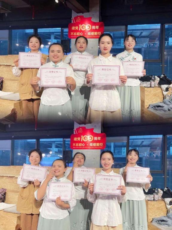 在几位同学的努力下,集体作品《喜迎二十大 青年勇争先》以95.8分的优异成绩获得了一等奖,《唱支山歌给党听》获得二等奖,《新征程》、《我们是共产主义接班人》《觉醒年代》获得三等奖。