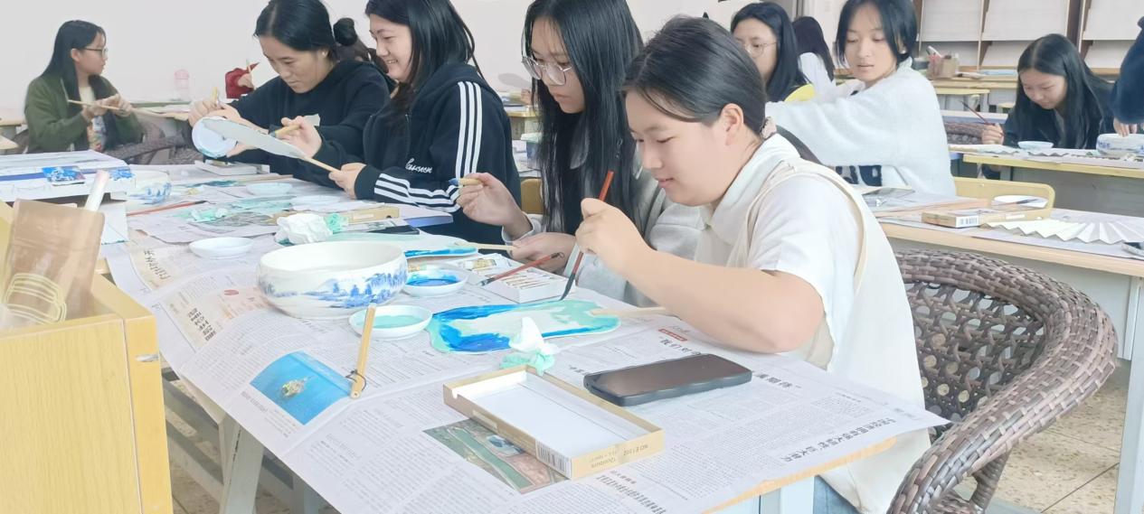 11月4日下午,公共基础部与艺术系携手开展了“彩绘心灵、艺启未来”美育系列活动第二期——国风“墨舞扇韵”绘制体验活动。各系部20名学生积极参与,共同感受国风艺术的韵味与魅力。